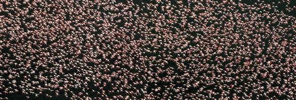位于坦桑尼亚北部和肯尼亚南部交界处的纳纯湖是东非火烈鸟生命的摇篮,东非百分之八十的火烈鸟都在这个神奇的湖泊上出生。每年的二、三月份,分散在东非各个湖泊的火烈鸟都要飞到这里来产卵,孵化幼鸟,场景蔚为壮观。