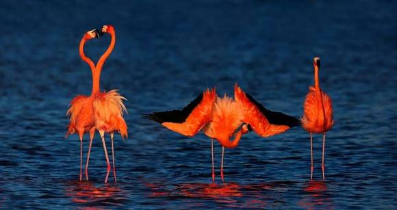3月是加勒比海火烈鸟恋爱的季节,是它们收获爱情与生命的美好时光。这时候,火烈鸟的爱情照耀了透明的加勒比海。