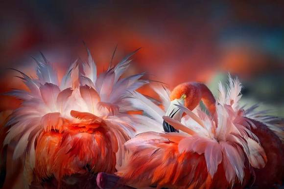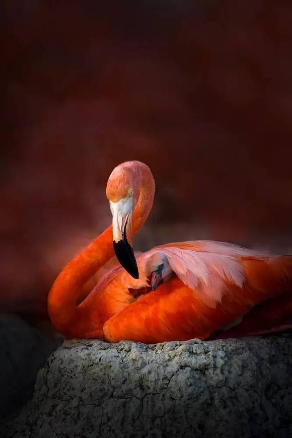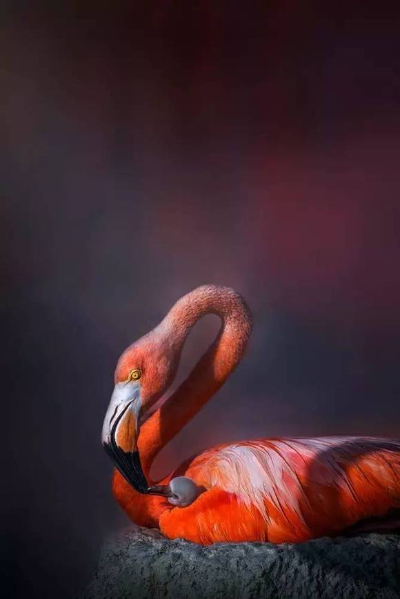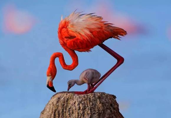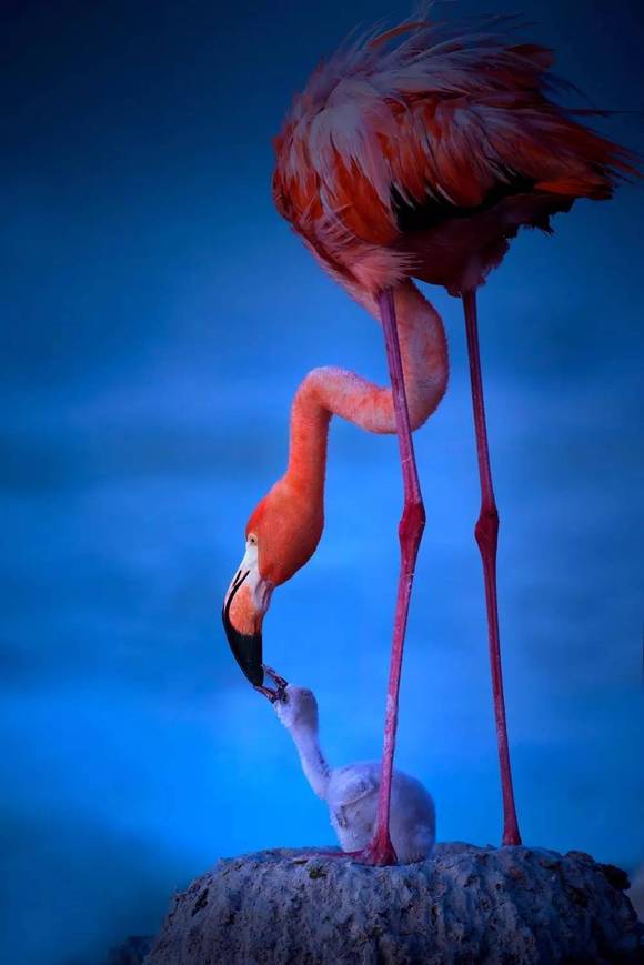 生育幼火烈鸟时,雌火烈鸟的羽毛像花火一样绽放。孕育的季节,也是妈妈们最美丽的季节。