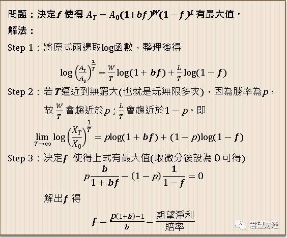 求出f让你的A(T)有最大值,f就是你的最佳出资比例。