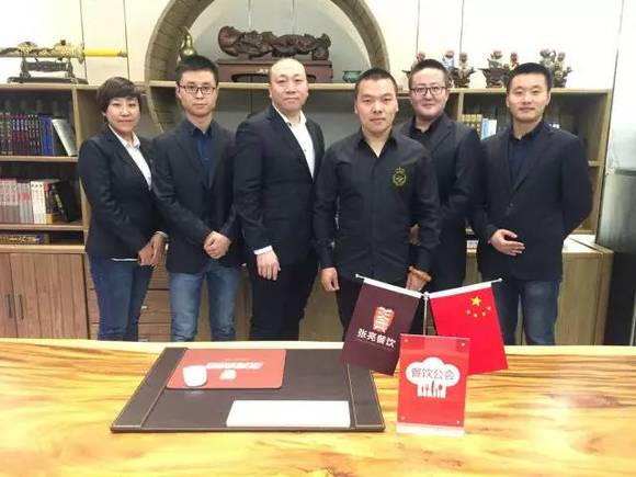 ▲ 张亮及高管团队接受餐饮公会记者专访,右三为张亮。