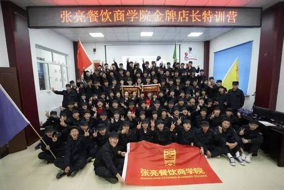 张亮餐饮商学院是张亮专门打造为加盟商培训的机构,一周开课一次,一个月四期,培训周期为七天,其中三天为团队拓展培训,采用半军事化管理方式;四天为门店实际操作培训,在指定直营店实习;培训团队由产品培训师、餐饮行业培训师和军事教官组成,内容涉及企业品牌文化、餐饮门店运营管理、营销技巧、团队管理、产品操作流程等等。每位加盟商需通过考试才能结业。截止目前,张亮餐饮商学院已开设104期课程。