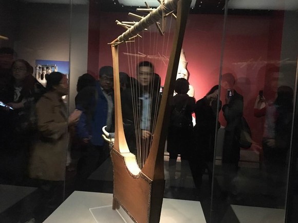 王后竖琴,牛头造型,每次看竖琴,总觉得中国弹棉花用的弓子是它的鼻祖。
