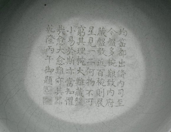 汝窑碗中题刻乾隆御制诗,不过乾隆认为这件是钧瓷