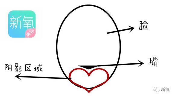 另一种更适合稍微严重一点的地包天拍摄方式,给下嘴唇以下制造阴影或遮挡,就是这个区域。