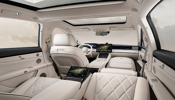 配置上,新车型包括50W无线充电、水晶挡把、全景天幕电动遮阳帘、加热方向盘、车载香氛以及加热通风座椅等。