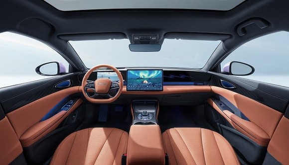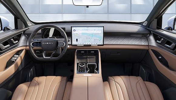内饰布局与奇瑞风云T9类似,提供黑色及黑/棕双色内饰配色选项,中控台设计尽量简化物理按键,大部分功能集成至15.6英寸2.5K高清大屏中。动力系统搭载2.0T发动机,最大输出255马力,峰值扭矩390牛·米,匹配孚祯8挡自动变速箱。