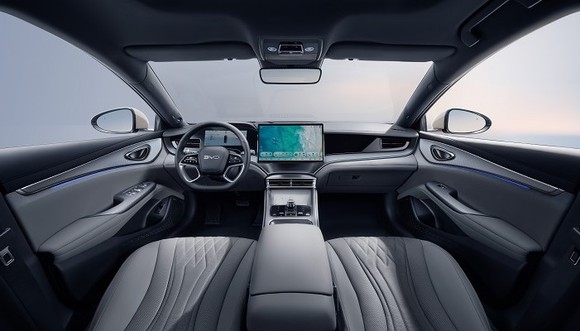 内部设计方面,海豹采用新款方向盘(但入镜车型款式未出现变更)和新增的橙配色,重新设计的仪表台提升了内饰视觉效果。海豹07 DM-i内饰全系标配流光灰配色,增添了铝饰条装饰。两款车型均搭载最新DiLink系统,提高用户操作体验。