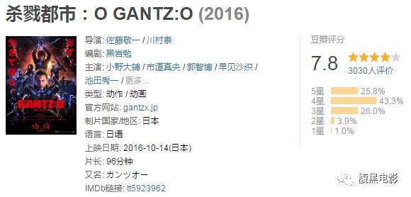 豆瓣评分7.8。看完这部片子之后,如果你让阿布用一个词来形容一下这部电影的话,我一定会用黄暴!本片根据漫画家奥浩哉的同名代表作改编(这部漫画当初就被定义为成人漫画)。漫画自2000年6月开始连载至今,单行本销量已经累计突破近千万册。并先后推出过动画和游戏。还曾推出真人电影,由二宫和也和松山健一联合出演。本片采用全新CG技术制作,说真的,看过这部《杀戮都市:0》之后,我才知道什么叫做真正的CG。