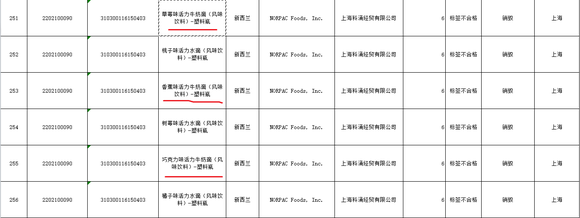 来自新西兰的草莓、香蕉和巧克力活力牛奶滴(风味饮料)-塑料瓶,因为标签不合格,全部被销毁处理,制造企业英文名称都是NORPAC Foods, Inc.,统一由上海科涌经贸有限公司负责进口。