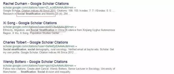 Google Scholar上搜索“social stratification”的结果