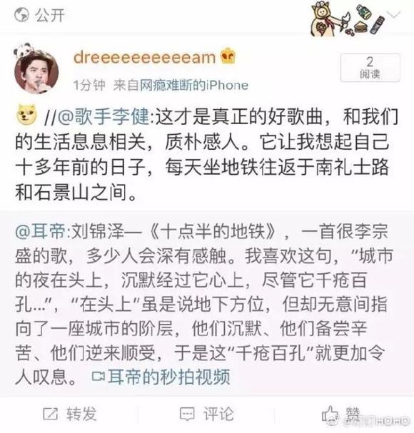 而看见了耳帝的评价,李健也是多次发微博称赞这首温暖的歌。他真挚地说:这才是真正的好歌曲,和我们的生活息息相关,质朴感人。它让我想起自己十多年前的日子...