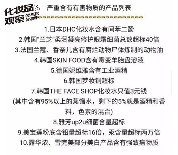 随后,品观君仔细看了一下所谓的“不合格化妆品”是什么鬼,才明白过来,大家今年又被骗了。