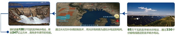 作为调节性能优良的多年调节水库,龙羊峡水电站安装有4台单机容量为320兆瓦的水轮发电机组,总装机容量1280兆瓦。装机850兆瓦的龙羊峡水光互补光伏电站作为龙羊峡水电站的“编外机组”,通过水轮机组的快速调节,将原本不稳定的锯齿型光伏电源,调整为均衡、优质、安全,更加友好的平滑稳定电源,减少电网为吸纳新能源电量所需的旋转备用容量,提高电网消纳及送出能力。