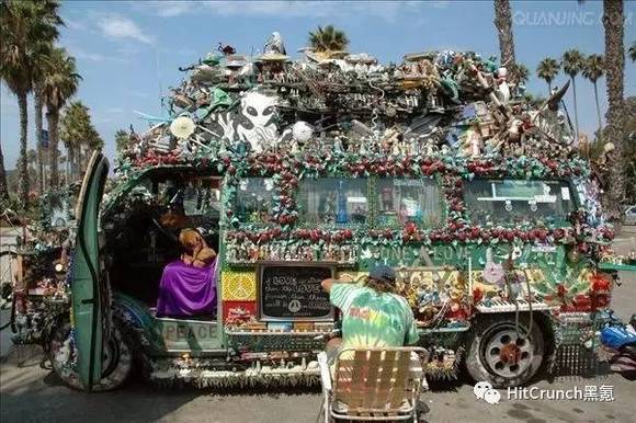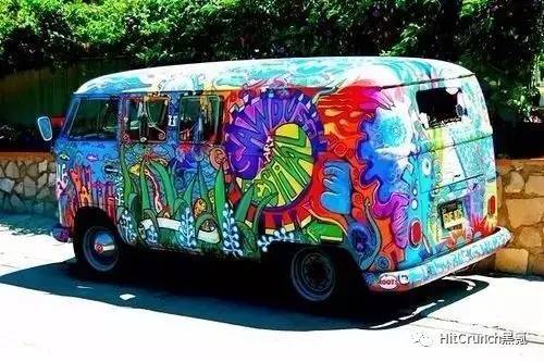 许多嬉皮士将有小型巴士改造成了移动的家,把旅行作为追寻自由的途径。在嬉皮海报宣扬了粗线条和大胆配色的美之后,嬉皮士们也纷纷把自己的车涂画成了艺术品—Hippie Bus。