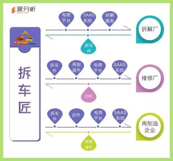 拆车匠最大的价值是整合了信息流、资金流和物流,搭建起横跨汽车拆解和配件再制造两个行业的网络体系。