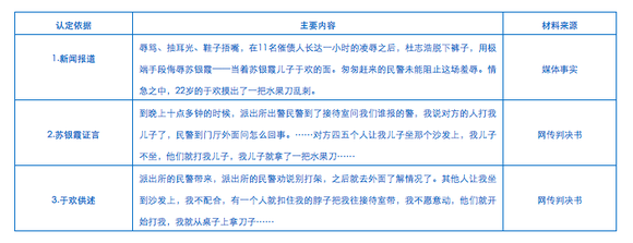 在讨论定性与量刑之前需要特别说明的是,应当区分“媒体事实”与“裁判事实”。本案公开之后,到目前为止,几乎所有的网评都是以《刺杀辱母者》的新闻报道为事实基础,是以“媒体事实”为依据;而法院裁判案件是根据法庭上的证据材料,以“裁判事实”为依据。这就存在一个错位的可能,媒体所陈述的事实,与法庭上法官接受证据材料所认定的事实,可能并不完全一致。错位的视角,得出的结论可能也有所不同。