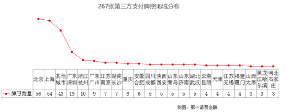 从2011年5月3日至2015年3月26日,央行分8批共发放270张第三方支付牌照。除去浙江易士、广东益民和上海畅购等三家被央行注销支付牌照资质,第三方支付牌照存量为267张。