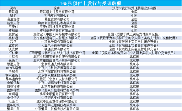 预付卡发行与受理牌照数量位居第一,其中业务开展范围为全国的仅有12家。其中,开联通、福卡、易生支付、新生支付、平安付、资和信等六家的业务不限线上线下;支付宝、盛付通、和包、翼支付、沃支付和汇付宝的线下业务对象限于已经实名认证的线上用户,相对受限。