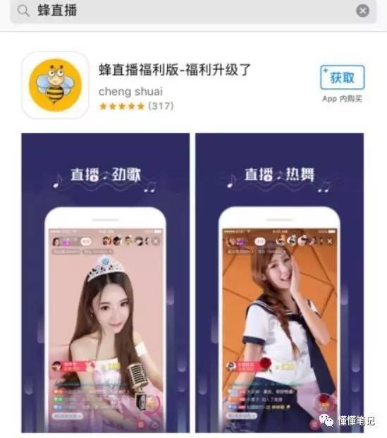 当懂懂笔记继续搜索蜜桃秀的时候,得到的第一条结果就是蜜桃秀,产品评级中写到“频繁、强烈的色情内容或裸露”。而且,蜜桃秀在App Store中仍然可以下载安装,并且正常登陆。