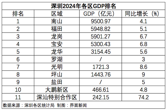 日前,深圳各区陆续公布2024年经济运行情况。