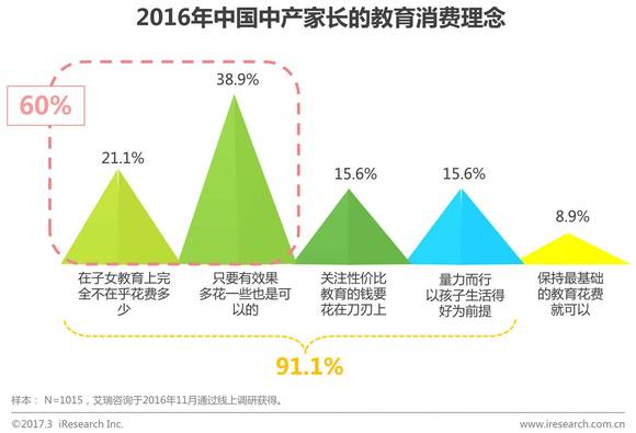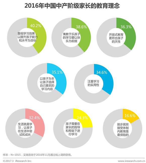 而2016年5月的央视新闻《习近平用“六个必须”推进一件什么事》一文中提到,“中国中等收入群体对子女教育高度重视,这对于我国后续人力资源的素质是一个巨大的投资。“那么我国中产阶级群体究竟是如何对待子女教育的呢?日前,爱智康联合艾瑞正式发布了《2017年中国中产阶级家庭教育观念白皮书》,通过对1000多位中产阶级家长的问卷调查,详细分析了中产阶级群体的子女教育现状以及他们的教育理念。