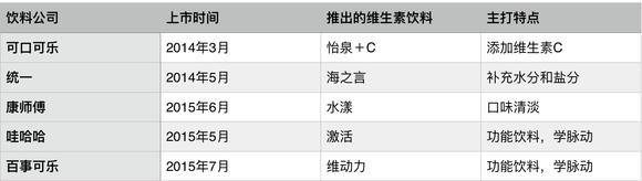与此同时,统一、哇哈哈、康师傅、百事可乐、可口可乐等传统大公司都开始了在维生素饮料市场的争夺。毕竟,在消费者对健康日益重视的前提下,“健康牌”才是最好用的。