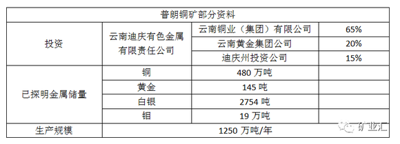 目前,普朗铜矿已探获铜金属量为480万吨、黄金145吨、白银2754吨、钼19万吨。该项目总投资64.71亿元,是中铝公司(注:云铜隶属于中国铝业公司旗下的中国铜业公司)转型升级的重点资源保障性工程及中央支持迪庆藏区发展重点项目工程之一。