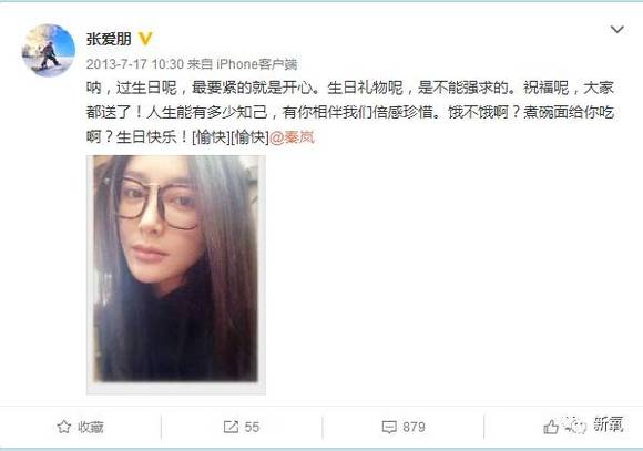 刚刚还发了微博骂张爱朋。