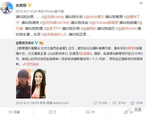 与此同时,他格外关注明星们的出轨、婚外情那些事。评价韩寒、赵卓娜。