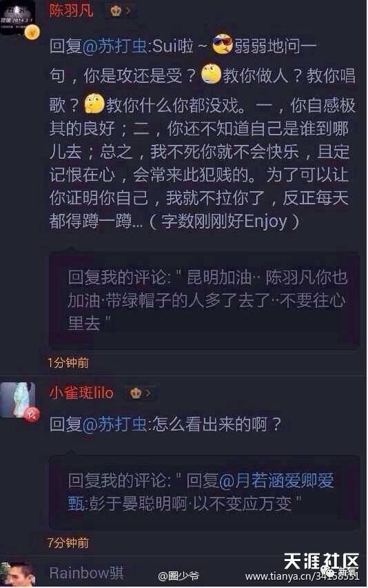 当时两口子是打死不承认的。陈羽凡把质疑的网友怼了一遍。