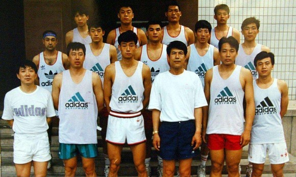 ▼蒋兴权(前排右三)曾三度被任命为男篮主帅,1994年世锦赛带队杀入前八创造历史
