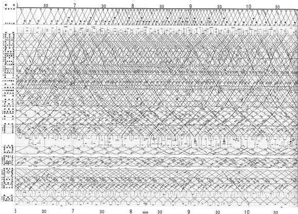 乘客能对到站时间有如此把握,少不了列车运行图的帮助。这是一种在限制运输系统内规划和管理时间表的通用技术,司机根据它来发车,使列车按时到达一个个站点。