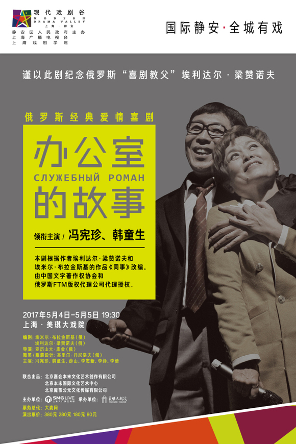 上个世纪八十年代,一部苏联电影《办公室的故事》陆续在中国各地放映,以其独特的冷幽默风格和浓厚的苏联情怀风靡全国,堪称是几代中国人的时代记忆。今年5月4日至5日,中国版话剧《办公室的故事》登陆沪上,老戏骨韩童生和冯宪珍又会为我们带来怎样的惊喜?