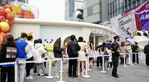 杭州的成功似乎是给了香飘飘灵感,今年3月,香飘飘将快闪店开在了成都,并继续加大快闪店的宣传力度。