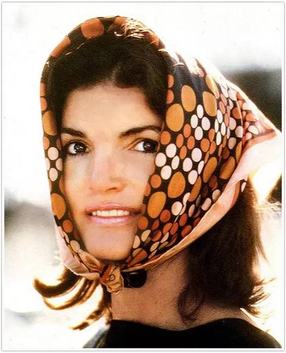 和Grace Kelly一样,头巾+墨镜也是杰奎琳“女神范儿”的标配。杰奎琳调侃过自己眼睛间距过宽,配一副眼镜都需要三个月时间。她善于利用墨镜来修饰自己。而为了让自己标志性的方脸柔和一点,她还喜欢出街时候给自己搭配一条围巾来包裹面部。