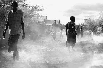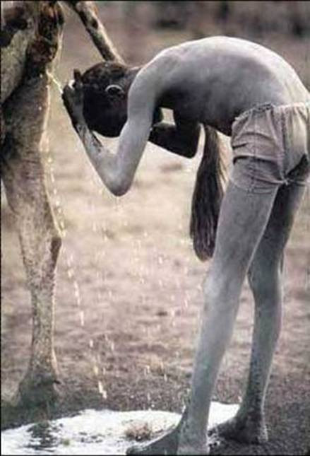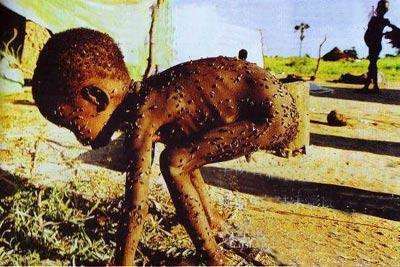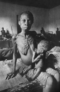 飞机着陆不久,他们就进入了一个村庄,顺着濒临的死亡线,卡特拍下了大量饥饿者的照片:他们半裸着上身,条条肋骨清晰可见;妇女手中抱着的孩子勉强吸食着母亲几近枯竭的乳汁,因为饥饿他们快要睁不开眼睛;十几岁的孩子,全身上下都好像是骨头搭架起来的一层皮囊,虚弱和无奈的眼神早已失去了童真。