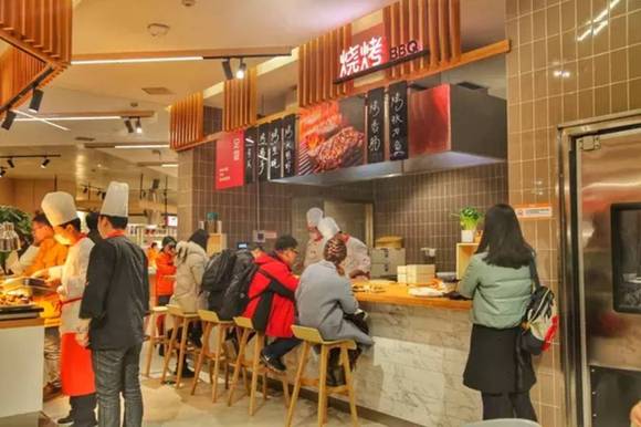 同时第三代店还增加了餐饮区,包括一部分门店加工的熟食类,如早点包子、烤鸭、麻辣烫等简餐或带回家的品类业态。