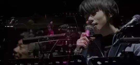 在她唱到《你快乐所以我快乐》的时候,大屏幕上猛然出现了窦靖童的身影。