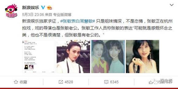 随后,张敏本人在深夜12点左右,紧急发出“澄清”微博,还特意贴上周慧敏和她老公的照片