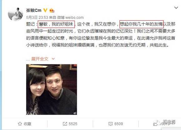 原来,所谓“出柜”只是网友的一厢情愿,人家张敏只是想表达“姐妹情深”