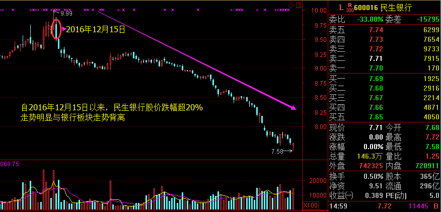 图3:民生银行股价K线走势图