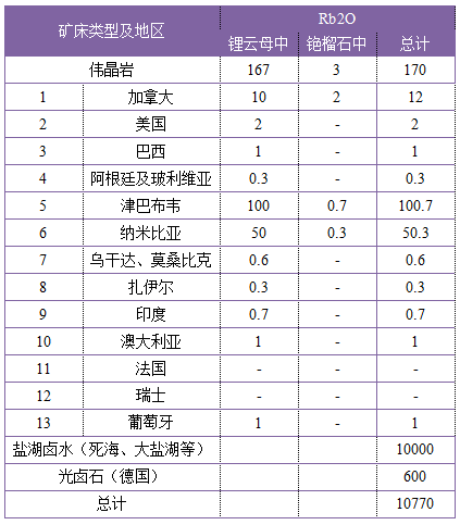 3、铷矿分布