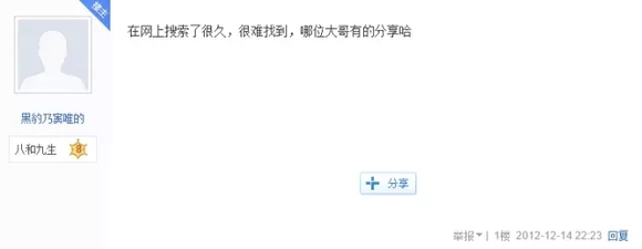 滚君找遍全网也没能找到这个作者的消息,更不知道他的真实姓名,只知道他有个贴吧账号,名叫“黑豹乃窦唯的”。