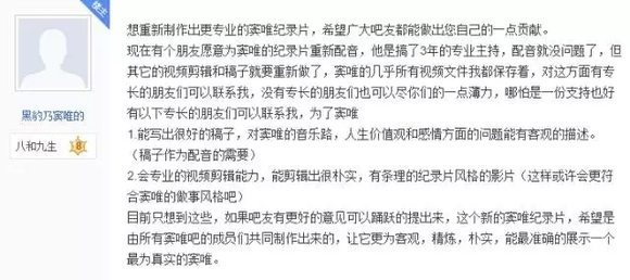 吧友们也很支持,觉得这件事太有意义了。在他们合力下,组成了相对专业的团队,找到了不少稀缺资源。
