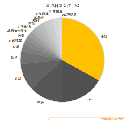 2、重点科室重度垂直:全科、 口腔、 中医、儿科、 妇科总关注度达83%