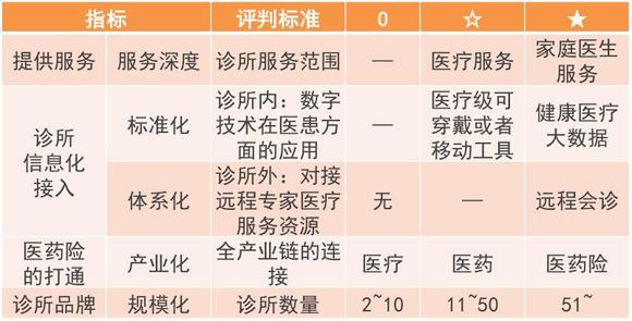 根据五大评价指标得出的排名中, 四颗星以上的分别有蓝卡诊所、 乐普医疗、 恒大社区健康管理中心、 和睦家诊所……