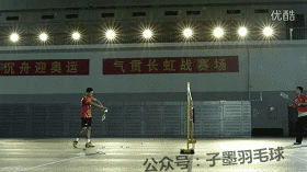 平射球的速度比较快,主要来源于手腕的抖动发力,配合大拇指的外顶,让球快速的飞向后场。动作如下: