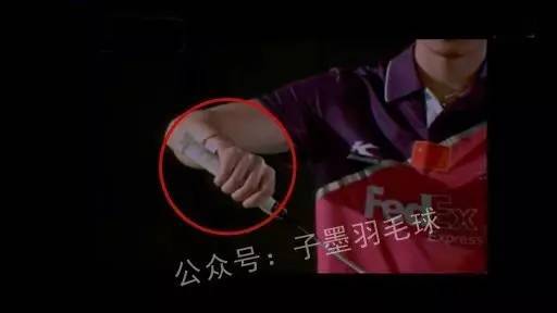①反手握拍。大拇指顶在拍柄宽面,虎口与拍柄留有间隙,前三手指用力,后两指作为辅助。