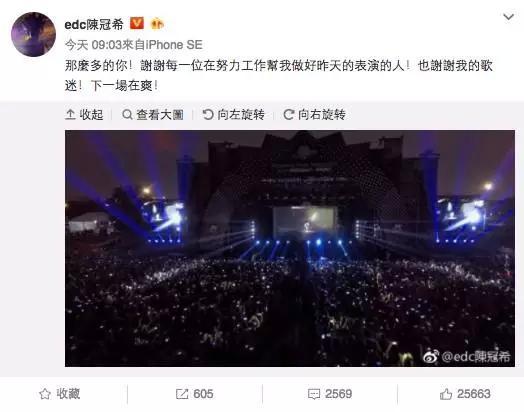 演出过后,他还不忘发微博感谢工作人员和歌迷,并表示下一场再爽。大部分留言也是纷纷力挺。